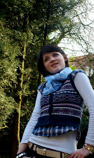 My outfit is a bit of a mess; different styles combined, not the same colours of blue, chic (bracelet and earrings), and casual (spencer and blouse). But I like it actually… it looks like (and actually also is true) like I’ve lost control a bit, and just let it go. I can be such a controlfreak, I’ve to relax more sometimes. It was a relaxing day, so the outfit ‘fitted’ very nice, I have to say. And to admit… I really was surprised by the fact I felt like I’ve been missing jeans really much, now I was wearing one again + I can’t say I missed my heels actually. Besides… my pierced toe loves me much more with my Timberlands on. Conclusion: These kind of outfitdays have to be planned in more, I think.