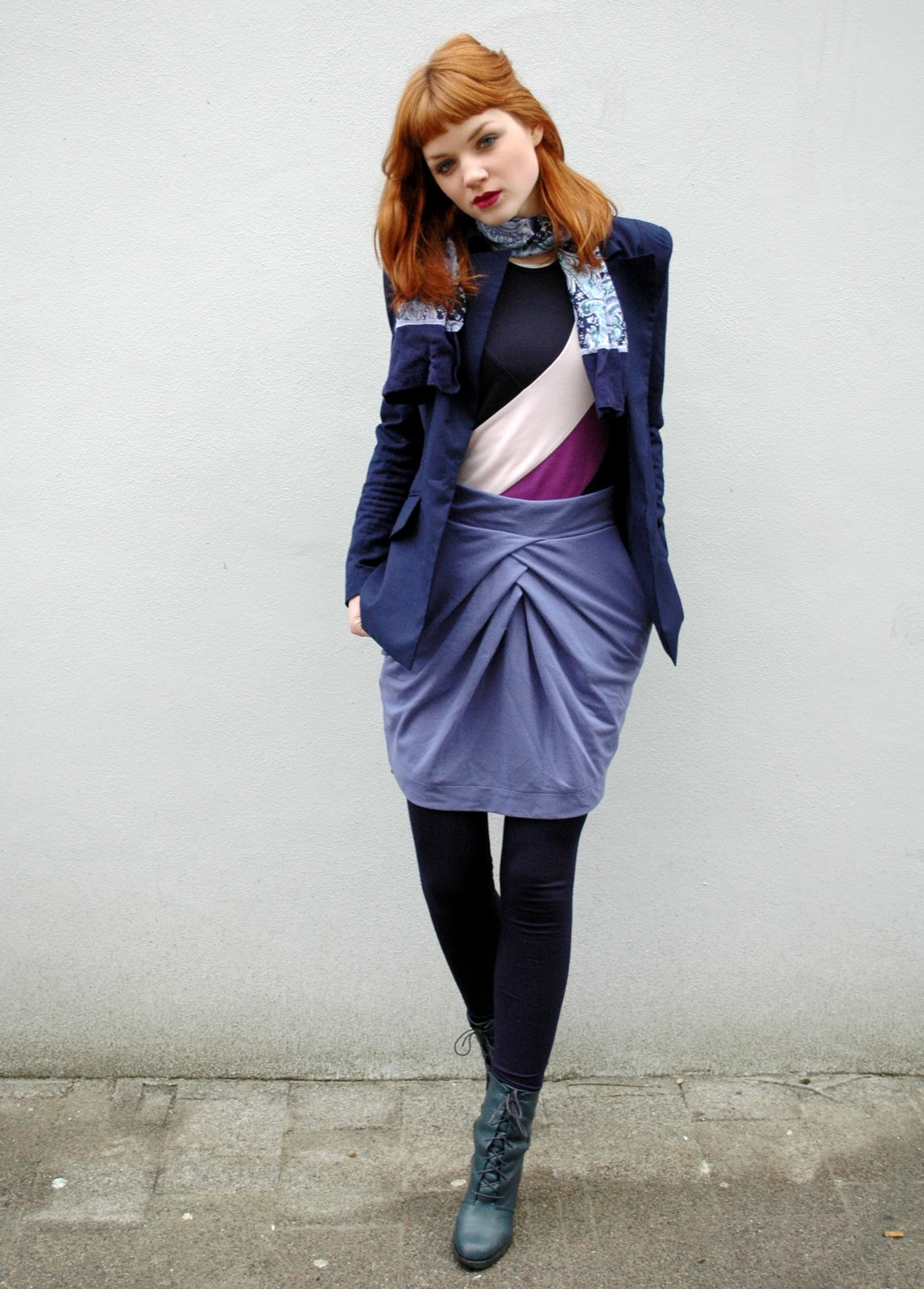 >This outfit isn’t that special to me, though I think that the colours look great together. Purple and blue is a combination I definitely should try more often. Besides I love the design of this skirt ánd the color of my lipstick!
