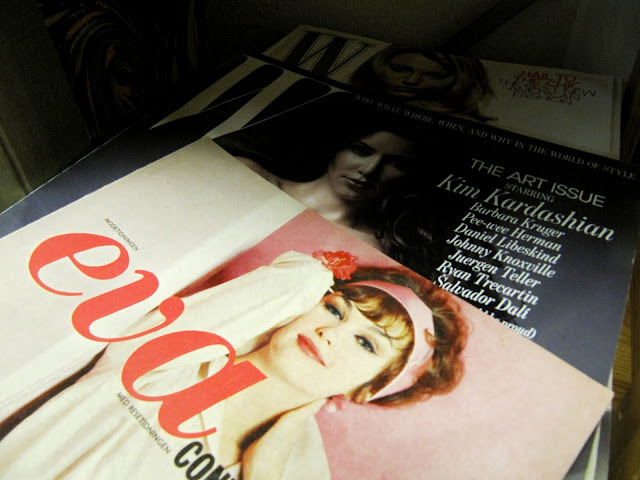 I have been hunting for some old magazines. Unfortunately the men told me the old Vogues are always sold in a minute, they just had a lot of W’s and Eva’s (Swedish).
